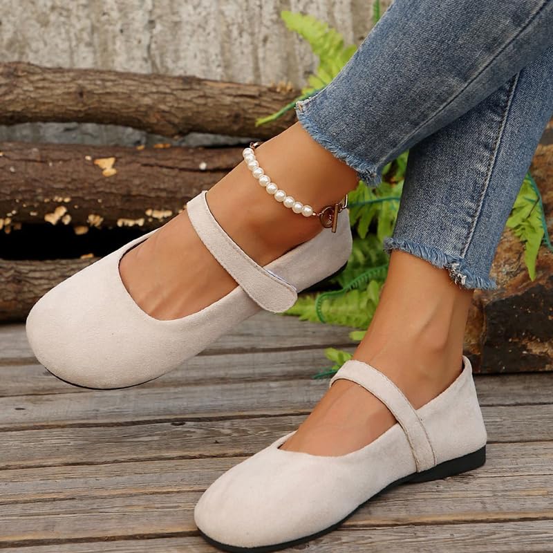 HOT ! Women's Vintage Mary Jane Flats, Elegant Faux Suede Ballet Flats Women Dressy, Casual Comfortable Round Toe Ankle Strap Ballet Shoes for Office Work Walking