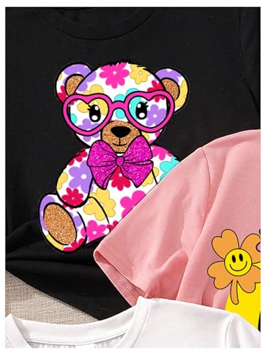 Floerns Girl's 3 Pack Cute Cartoon Print Short Sleeve T Shirt Crew Neck Graphic Tee Top 3