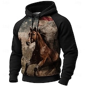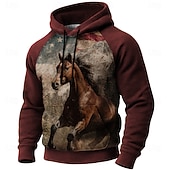 More information about Men's Horse Hoodie Sweatshirt 3D Hunting Hooded Outdoor Sports Outdoor Black Burgundy Raglan Sleeves Fall Winter Designer