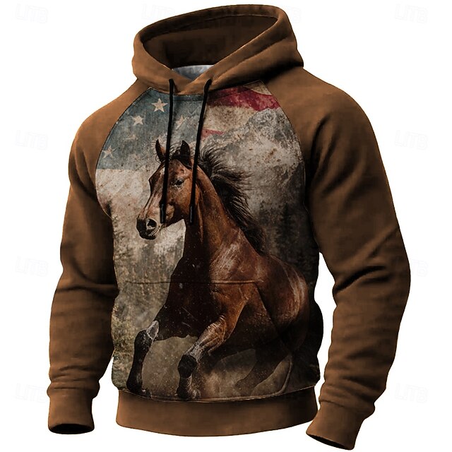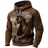 Men's Horse Hoodie Sweatshirt 3D Hunting Hooded Outdoor Sports Outdoor Black Burgundy Raglan Sleeves Fall Winter Designer 3