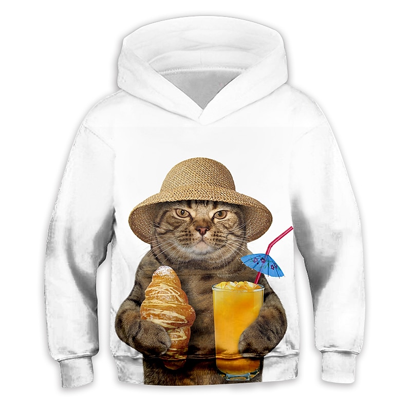 Kids Girls' Hoodie Animal Casual Long Sleeve Pocket Cute 7-13 Years Fall White Light Green Blue 19