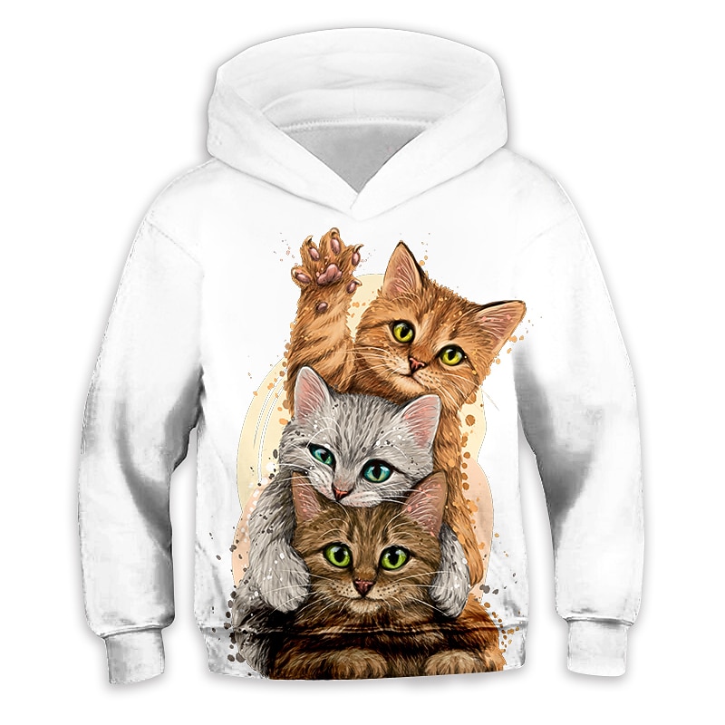 Kids Girls' Hoodie Animal Casual Long Sleeve Pocket Cute 7-13 Years Fall White Light Green Blue 3