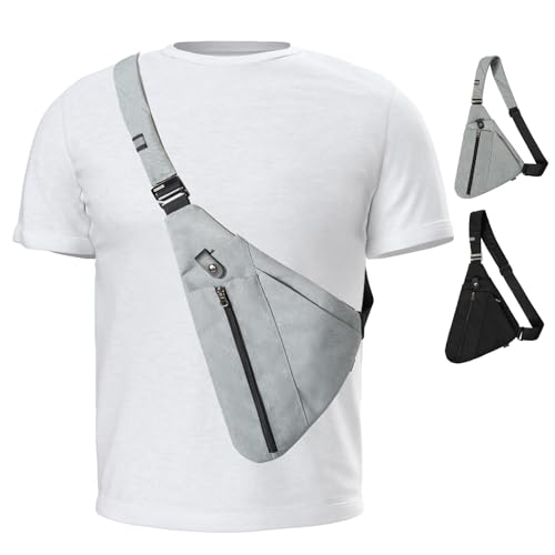HOT ! Mens Crossbody Bag with RFID Pocket,Grey Sling Bag with Water Bottle Bag for Travel Sports