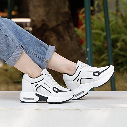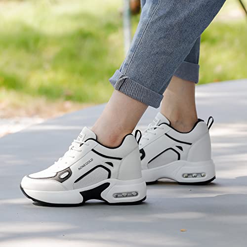 AONEGOLD Hidden Wedge Sneakers for Women Casual Platform Sneakers High Heeld Lace Up Walking Shoes Women's Fashion Sneakers 7