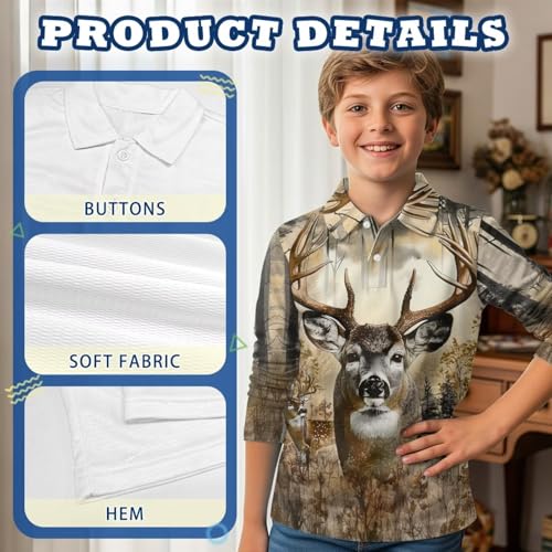 More information about Kids Golf Shirts 3-16 Years Boys Camo Casual 1/4 Button Long Sleeve Collared Shirts Fall Active Outdoor Tops