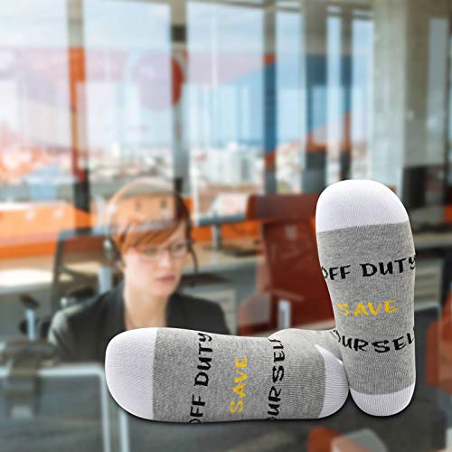 JXGZSO 2 Pairs 911 Dispatcher Socks Gift - Off Duty Save Yourself Socks - Retirement Gift for Dispatchers 1