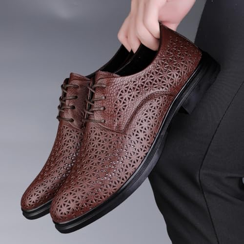 Men's Genuine Top - Grain Leather Breathable Slip - On Oxford Dress Shoes, Ideal for Business Meetings, Formal Events and Daily Office Wear Brown Black 6