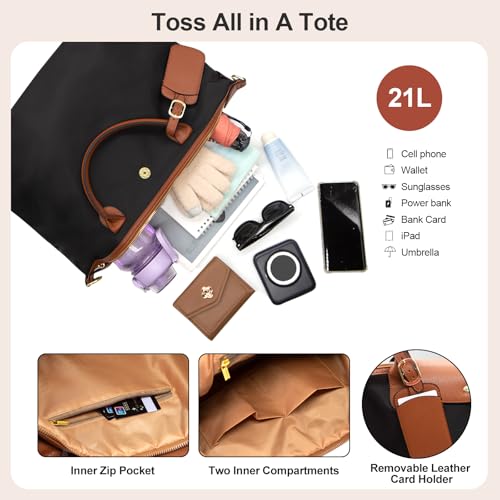 • Durable Nylon Tote Bag: These large capacity nylon tote bag with high quality zipper closure are made of long-lasting nylon fabric, which is soft, lightweight and splash proof. Solid wide shoulder straps with smooth metal zippers, no need to worry about shoulder fatigue and any ripping or break during trips.