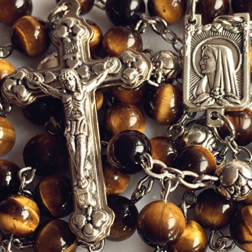 elegantmedical CATHOLIC Tiger Eye & Silver Rose Beads ROSARY CROSS crucifix necklace 4