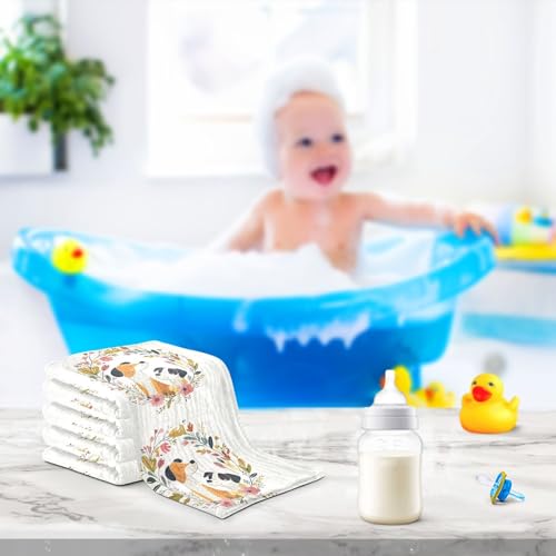 vvfelixl Baby Print Dogs Baby Burp Cloths Baby Muslin Washcloths for Boys Girls Cotton Babys Face Towel for Newborn Infants Soft and Absorbent 11.8 X 11.8 in, 5 Pack 4