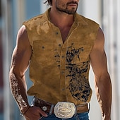 More information about Men's Nautical Sailboat Shirt Western Shirt Cowboy Shirt Sleeveless Vintage Western Style Outdoor Work Causal Summer Spring Shirt Collar Khaki