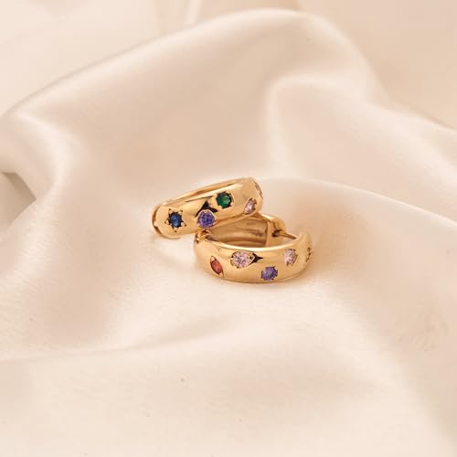Free bird Huggie Earrings for Women Colorful Earrings for Women Multi-Colored Cubic Zirconia 4