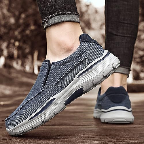 • 【Fashionable Design for Men】- Men's loafers & slip-ons with a weathered canvas upper, the everyday style you can count on. These canvas boat shoes men are fashioned with a casual fabric upper with fray details, offer a sleek, modern silhouette and foldable design, you can either wear them as slip-ons shoes or turn them into slippers, easily slide in for instant comfort whenever you.