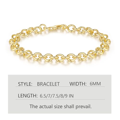14K Gold Bracelets for Womens Bracelet for Men Stylish O-Shaped Cuban Link Gold Chain Bracelets for Women Trendy Stackable 6.5-9in 7
