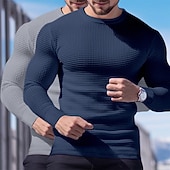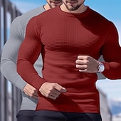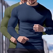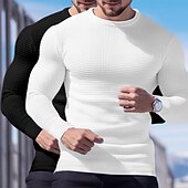 More information about 2 Piece Men's Waffle Shirt T Shirt Tee Top Long Sleeve Shirt Long Sleeve Crew Neck Crewneck Fall Spring & Fall Plain Fashion Designer Basic Knitted Vacation Street Casual Top Tee for Men