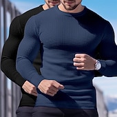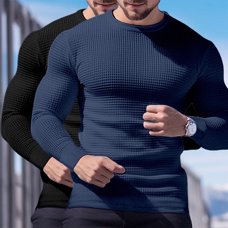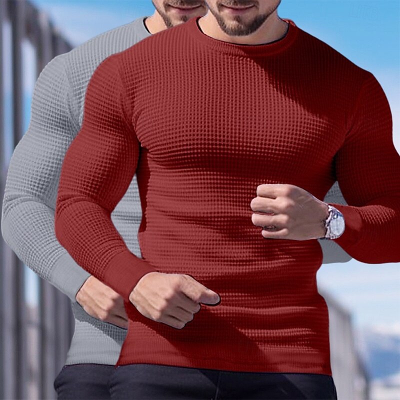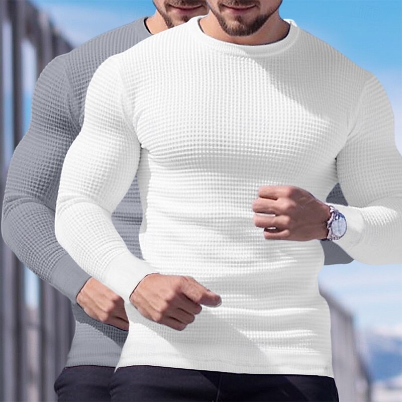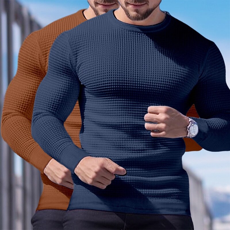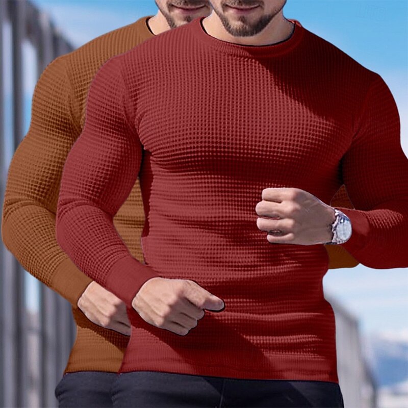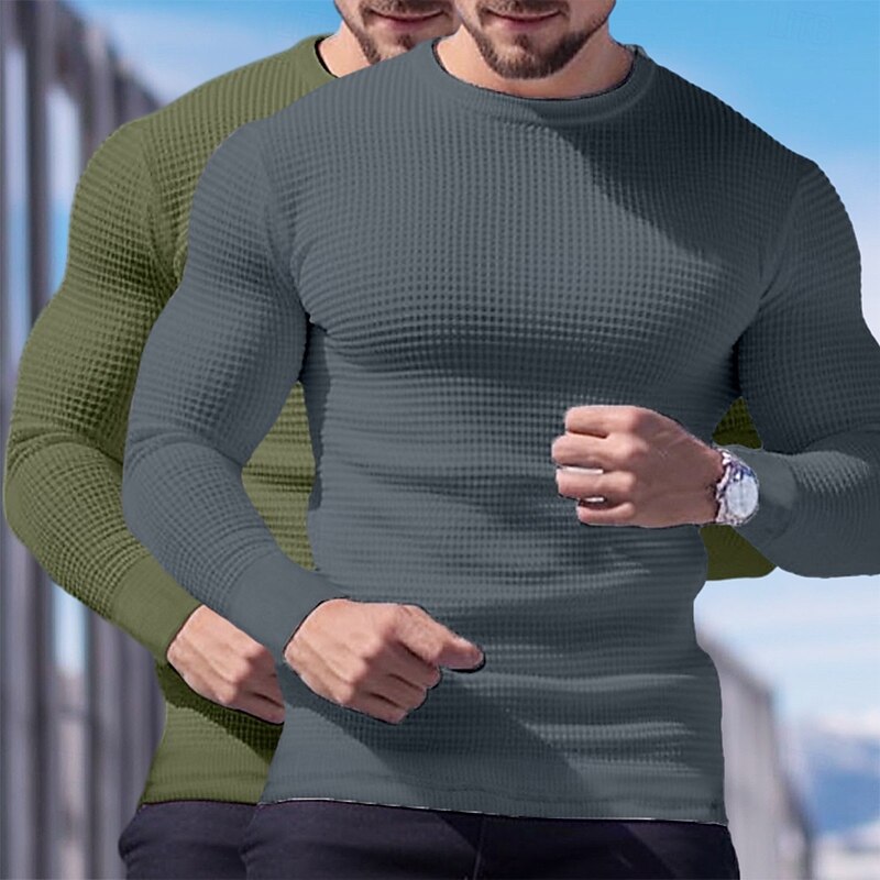 2 Piece Men's Waffle Shirt T Shirt Tee Top Long Sleeve Shirt Long Sleeve Crew Neck Crewneck Fall Spring & Fall Plain Fashion Designer Basic Knitted Vacation Street Casual  Top Tee for Men 25