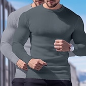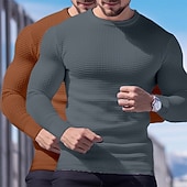 2 Piece Men's Waffle Shirt T Shirt Tee Top Long Sleeve Shirt Long Sleeve Crew Neck Crewneck Fall Spring & Fall Plain Fashion Designer Basic Knitted Vacation Street Casual  Top Tee for Men 30