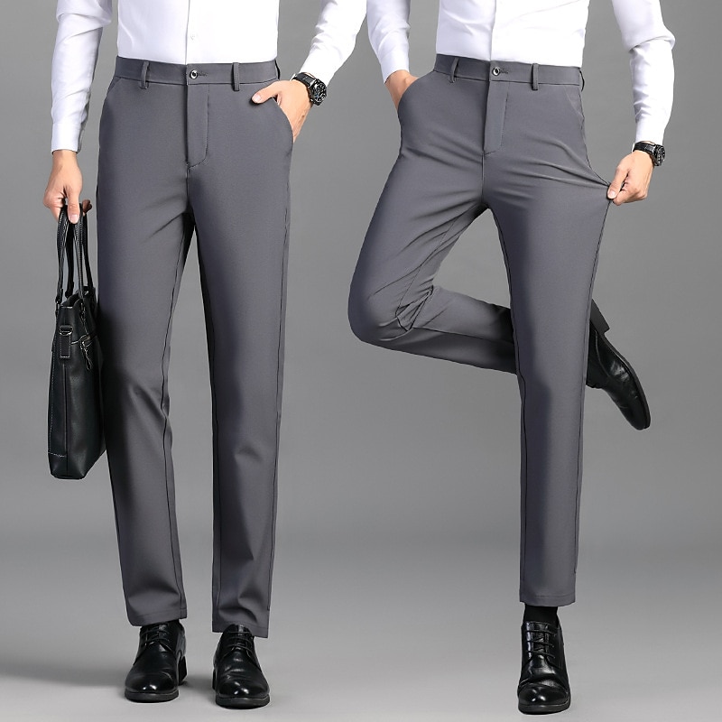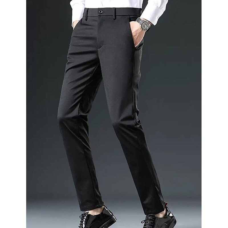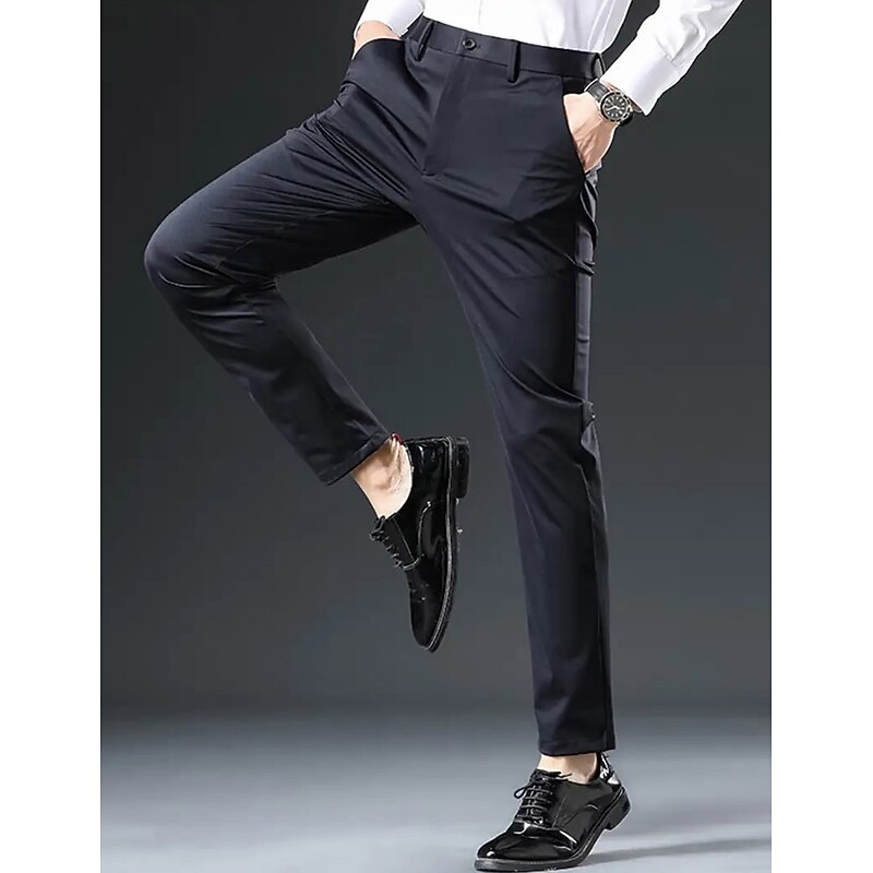 Men's Dress Pants Trousers Suit Pants Pocket Plain Comfort Breathable Outdoor Daily Going out Casual Formal Black Dark Blue 11