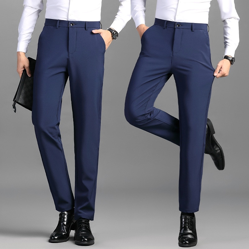 Men's Dress Pants Trousers Suit Pants Pocket Plain Comfort Breathable Outdoor Daily Going out Casual Formal Black Dark Blue 10