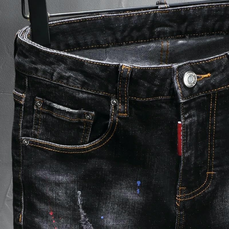 More information about Mens Street Designer Jeans Retro Black Gray9 Stretch Slim Fit Painted Ripped Jeans Men Hip Hop Vintage Denim Pants