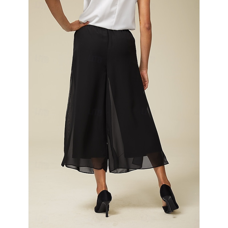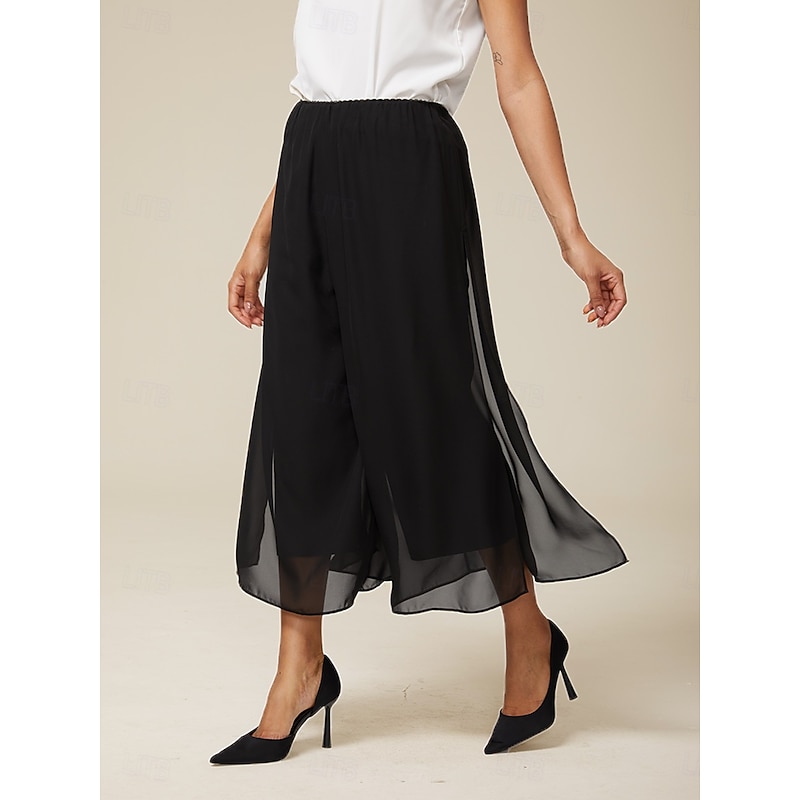 More information about Women's Culottes Wide Leg Vacation Classic Calf-Length Mid Waist Elastic Waist Stylish Fashion Stretchy Formal Office Dailywear Black Summer Spring Fall