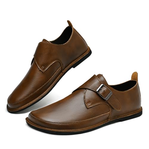 Mens Shoes Dress Slip - on Loafers, Men's Simple Premium Genuine Leather Buckle Shoes for Driving 6
