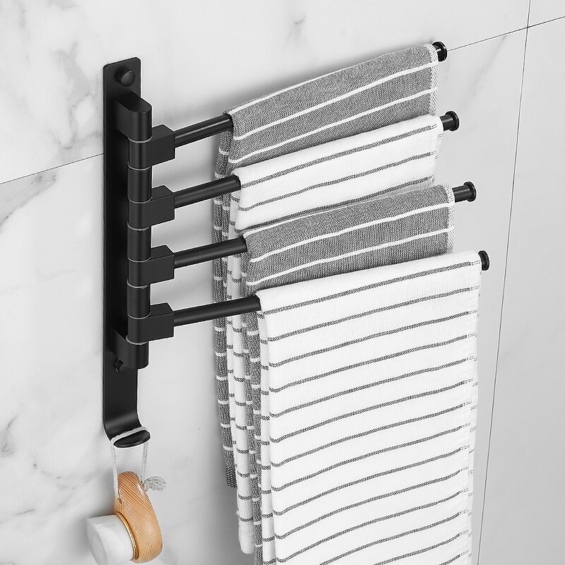 Towel Bar Robe Hook Bathroom Shelf Foldable Multilayer New Design Contemporary Modern Aluminum Metal 1PC - Bathroom 4-towel bar Wall Mounted 4