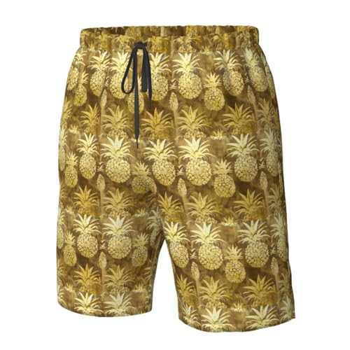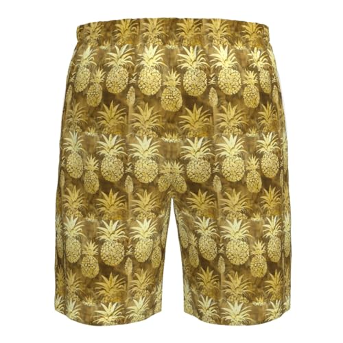 HOT ! Gold Pineapple Background Print Stylish Beach Shorts Swim Trunks Lightweight Breathable Summer Outdoor Activities