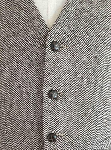 Men's Wool Herringbone Groom Vests Formal Groom's Wear Suit Tweed Vest Skinny Wedding Dress Waistcoat