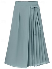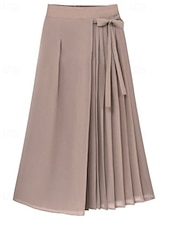 More information about Women's Wide Leg Slacks Streetwear Casual Full Length Natural Plain Pleated Elastic Waist Outdoor Comfortable Outdoor Street Holiday Black Pink Blue Fall Regular Fit