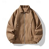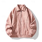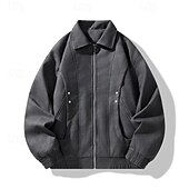 More information about Men's Jacket Casual Jacket Outdoor Vacation Warm Zipper Pocket Fall Winter Plain Fashion Streetwear Standing Collar Regular Black Pink Coffee Jacket