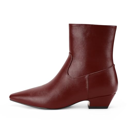 Women's Ankle Boots Pointed Toe Chunky Low Heeled Short Booties Comfort Casual Shoes with Side Zipper 5