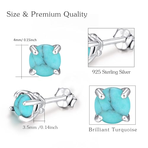 Turquoise Studs Earrings, 925 Sterling Silver 4mm/6mm Round Shape Tiny Studs, Turquoise Jewelry Present for Women Girlfriend 3