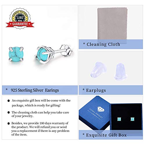 Turquoise Studs Earrings, 925 Sterling Silver 4mm/6mm Round Shape Tiny Studs, Turquoise Jewelry Present for Women Girlfriend 6