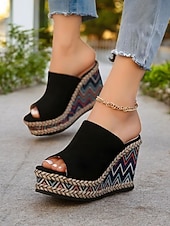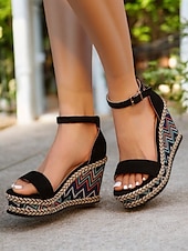 More information about Women's Ethnic Print Espadrille Wedge Sandals – Black Open Toe Platform Shoes for Summer Parties & Resort Outfits