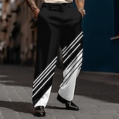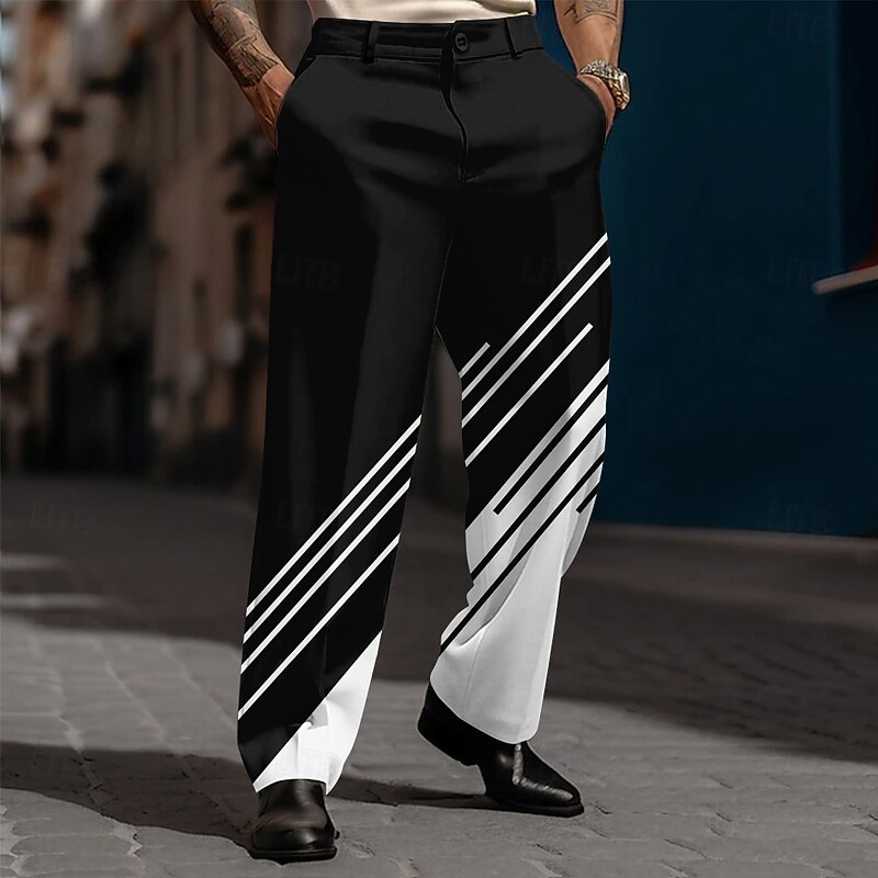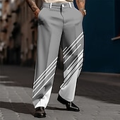 HOT ! Men's Geometric Striped Dress Pants Trousers Suit Pants Mid Waist Casual Dailywear Holiday Relaxed Fit Flat Front Dress Pants with Side Pockets Spring Fall 3D Print Black Pink Blue