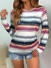 More information about Women's T shirt Crew Neck Long Sleeve Tunic Graphic Geometric Color Block Vintage Stylish Classic Round Neck Regular Tops Daily Print Purple Fall