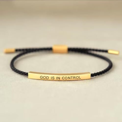 HOT ! Inspire Bracelet God Is In Control Bracelet For Women, Christian Faith Adjustable Braided Stainless Steel Engraving Inspirational Letter Handmade Gifts Jewelry