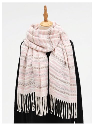 More information about OYOANGLE Women's Plaid Print Fringe Trim Scarf Rib Knit Soft Winter Warm Scarves Shawl