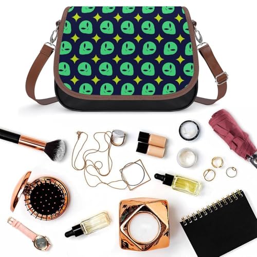 Alien Head Pattern Crossbody Bag Anti-Theft Side Shoulder Bags Adjustable Leather Messenger Bag Unisex 1