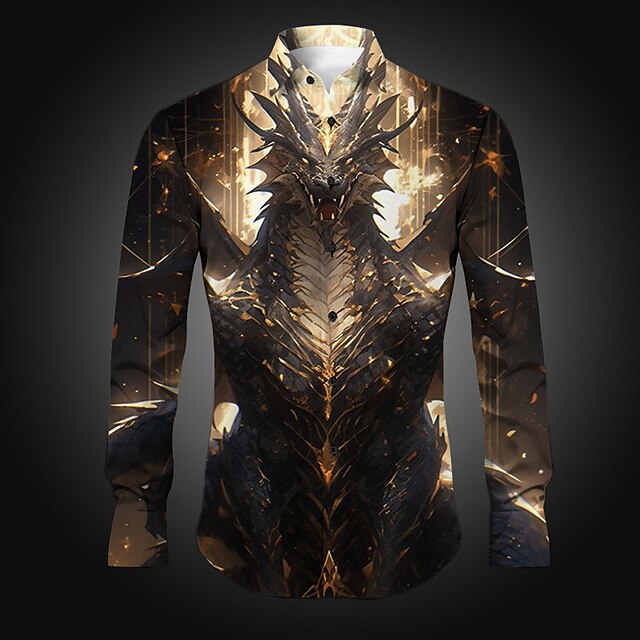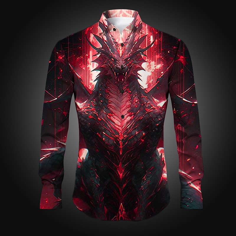 More information about Men's Dragon Shirt Button Up Shirt Long Sleeve Artistic Abstract Daily Wear Going out Spring Turndown Print Button-Down Red Blue Dark Green Purple Gold