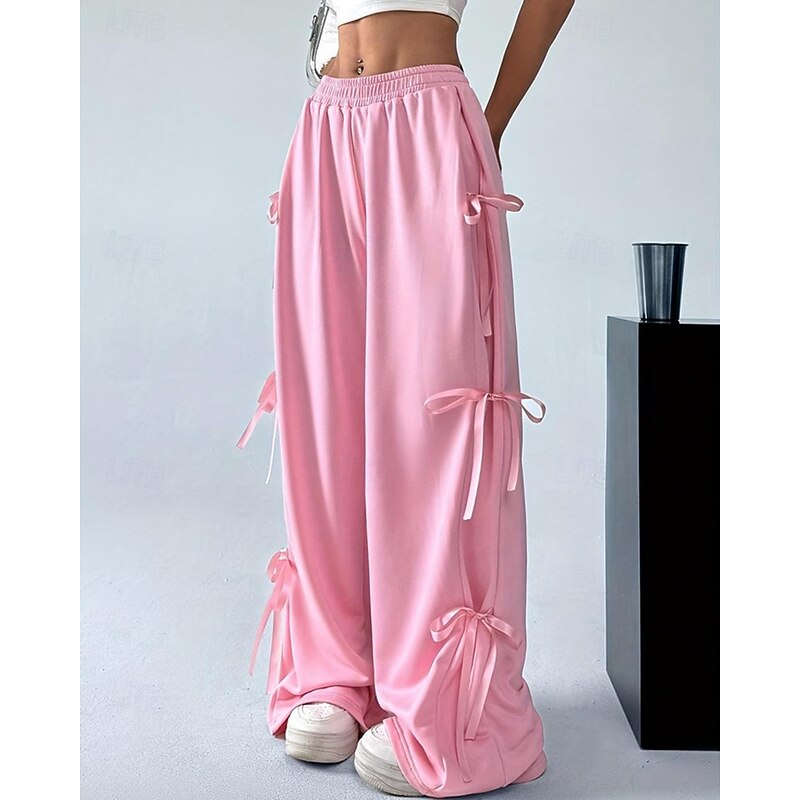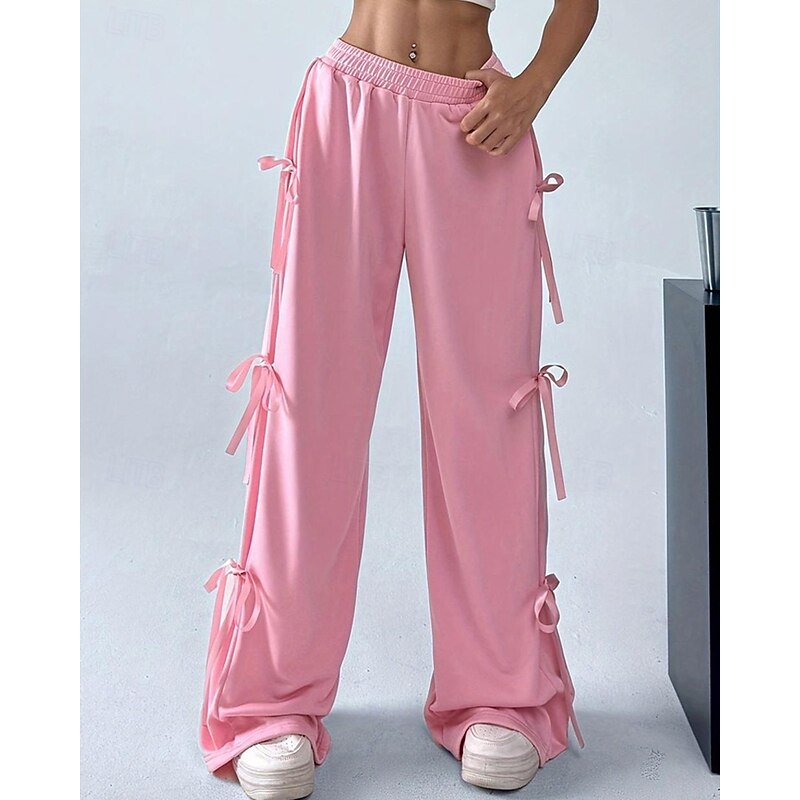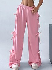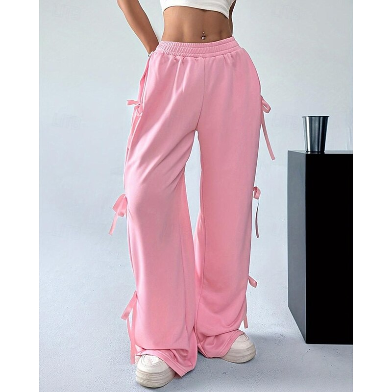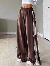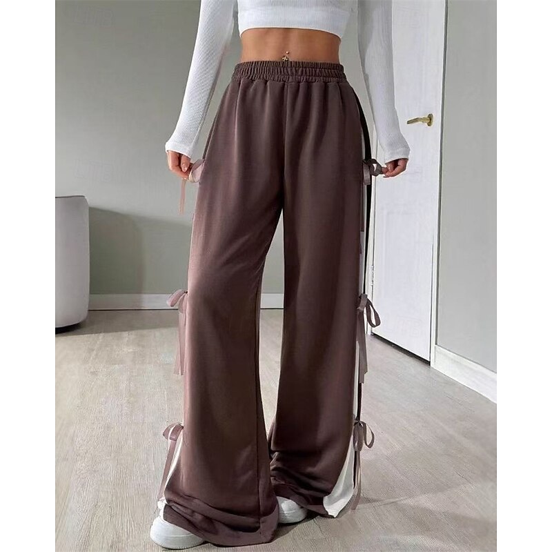 More information about Women's Sweatpants Pants Trousers Track Pants Fashion Streetwear Full Length Mid Waist Color Block Patchwork Elastic Waist Breathable Comfortable Micro-elastic Street Daily Wear White Pink Coffee