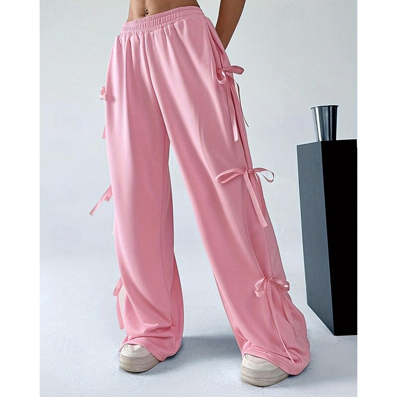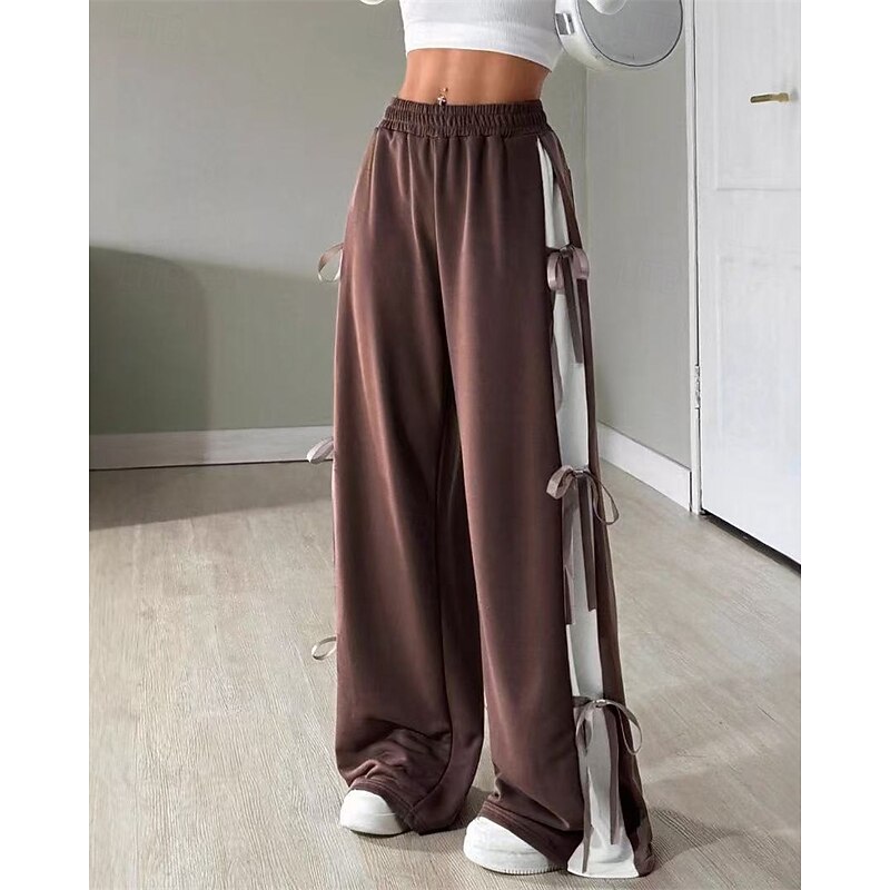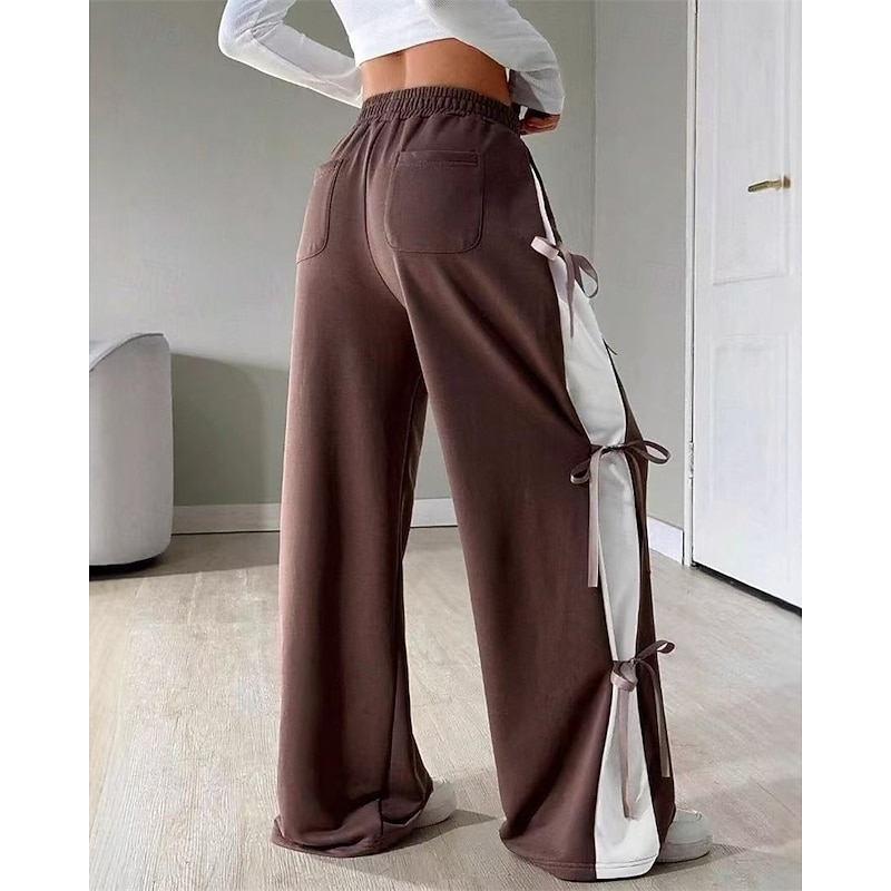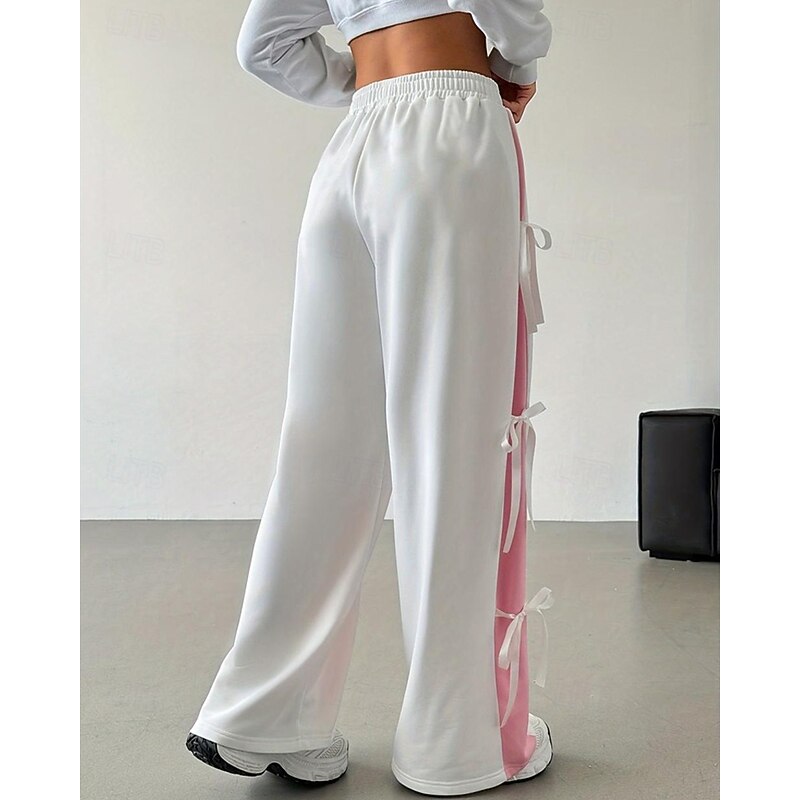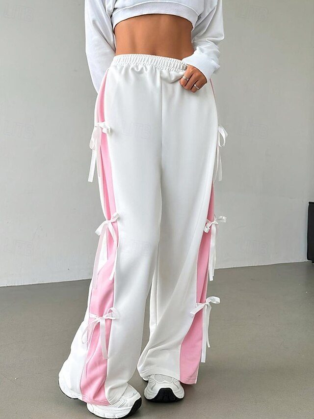 HOT ! Women's Sweatpants Pants Trousers Track Pants Fashion Streetwear Full Length Mid Waist Color Block Patchwork Elastic Waist Breathable Comfortable Micro-elastic Street Daily Wear White Pink Coffee