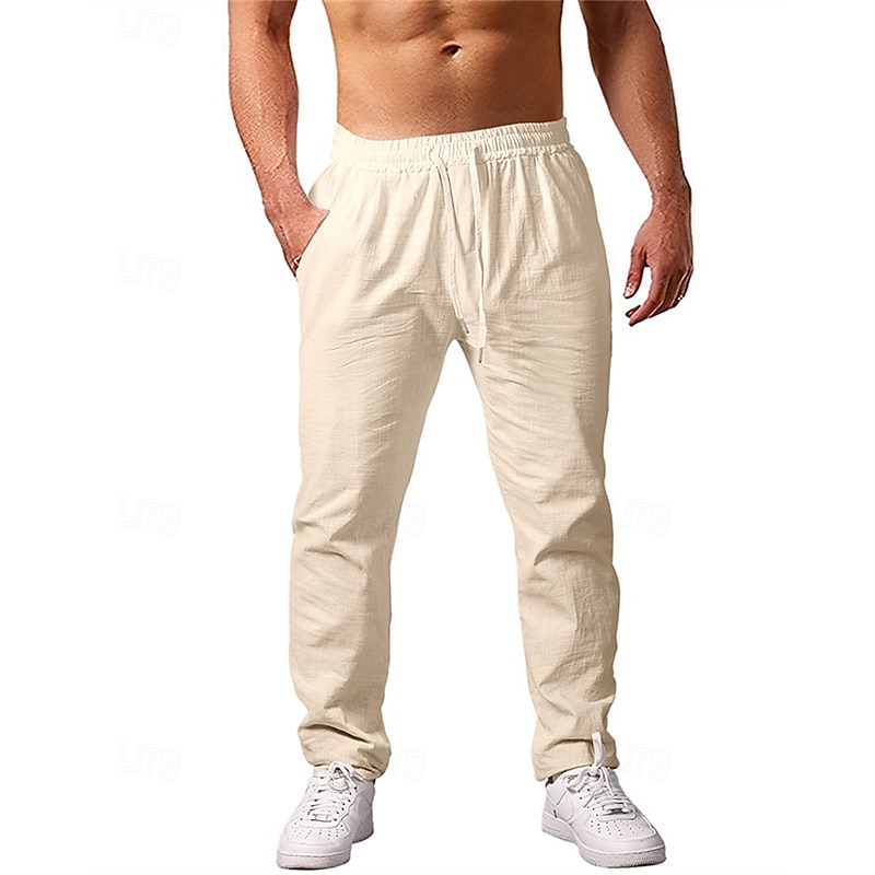 HOT ! Men's Linen Pants Trousers Summer Pants Beach Pants Pocket Drawstring Elastic Waist Plain Comfort Breathable Vacation Daily Holiday Hawaiian Boho Beige