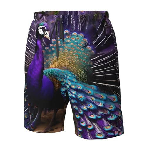 HOT ! Purple Peacock Print Beach Shorts Swim Trunks Swimwear for Men Bathing Suit Men's Shorts with 3 Pockets