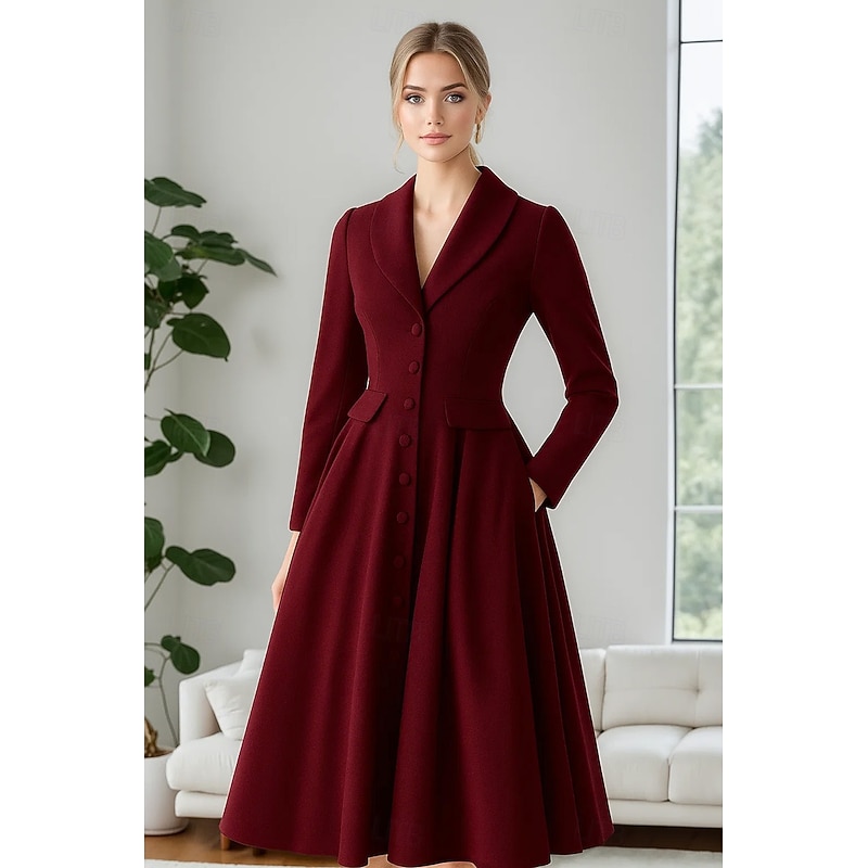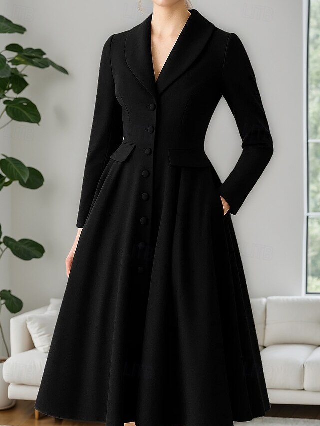 Tuxedo Dress Formal Wedding Wedding Guest Twill Suit Fabric Elegant Formal Long Sleeve Pleated Midi Length Shawl Lapel Single Breasted 1