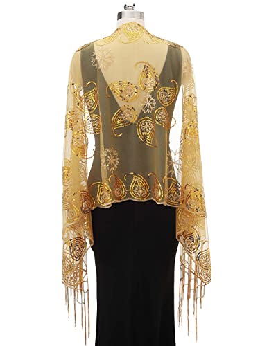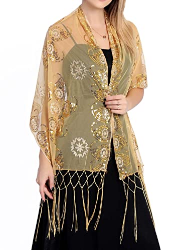 HOT ! EASEDAILY Women's Shawls and Wraps for Evening Dresses Sparkling Sequin Wedding Party Scarf Fringe Bridal Stole for Bride