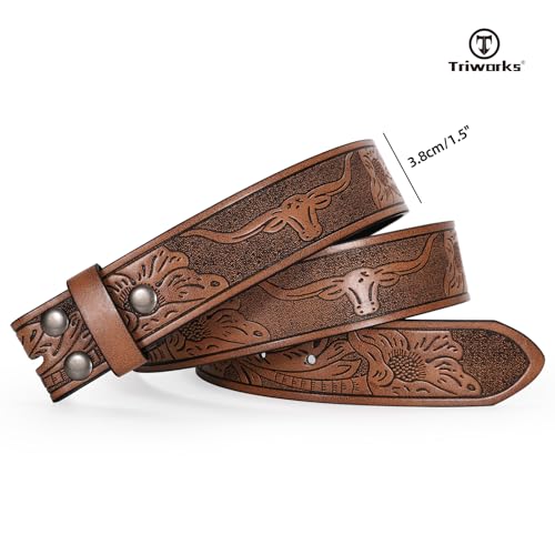 Western Leather Belt Strap for Men without Buckle Cowboy Cowgirl Leather Mens Belt for Jeans 5