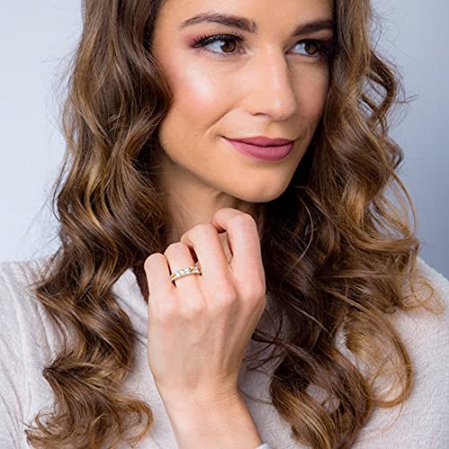 PEORA Sterling Silver 4mm Milgrain Half-Eternity Anniversary Wedding Ring Band for Women, Various Gemstones, Comfort Fit, Sizes 5 to 9 5