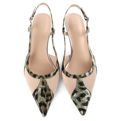 Joseywade Leopard Slingback Heels Women's Pointed Toe Kitten Heels Mesh Dress Shoes 5